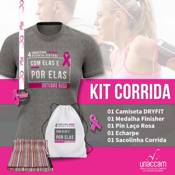 UNACCAM - UNIÃO E APOIO NO COMBATE AO CANCER DE MAMA - abre a partir de 1 de outubro, as inscrições para o 4º Desafio UNACCAM +SAÚDE “COM ELAS E POR ELAS”, um desafio com caminhada, corrida e bike pela saúde de todas as pacientes de câncer de mama.