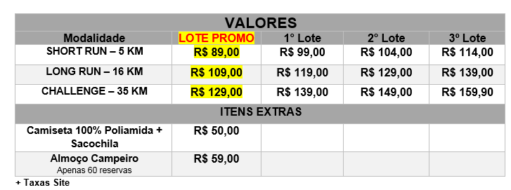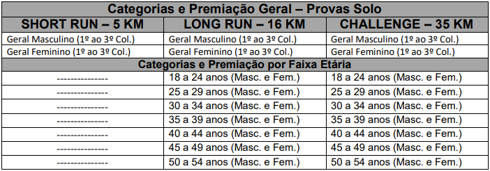 - Percurso de 05 km: 16 anos completos no ano da prova;