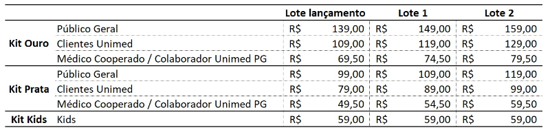 - É obrigatório incluir no processo de inscrição o número do Cartão Unimed para beneficiários Unimed, CRM para médicos cooperados da Unimed PG e matrícula para colaboradores da Unimed PG