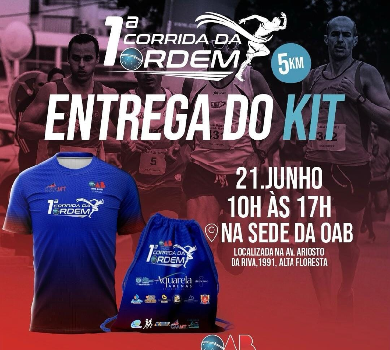 Vem aí mais uma edição da Corrida da Ordem, um evento promovido pela OAB 8ª Subseção de Alta Floresta, com realização da LIFE Running e do Canal do Ciclista.