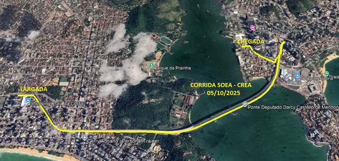 🏃♂️🏃♀️ Qualidade de vida, superação e espírito esportivo! A PACE Eventos Ltda, organiza a 1ª CORRIDA SOEA - EDIÇÃO CAPIXABA com Largada em ao lado do Shopping Praia da Costa em Vila Velha e Chegada em Vitória na Praça do Tribunal de Justiça no dia 05/10/2025 ás 7:00 h, para participantes que buscam qualidade de vida através de atividades esportivas dentro do calendário de corridas no Espírito Santo.