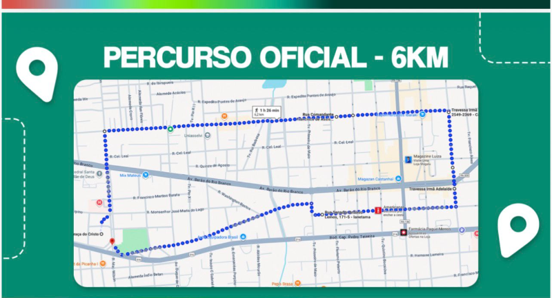 🏁 Percurso: 6 km. 📋 Categorias: Geral (Masculino e Feminino)