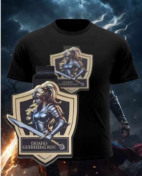 KIT PREMIUM: 1 Medalha Guerreiras Run e 1 Camiseta.