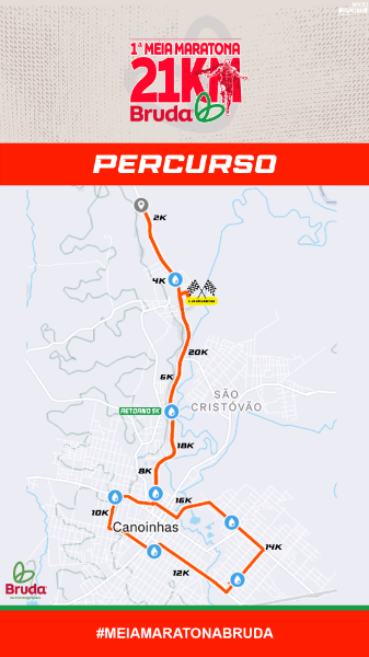 🗓️ 19 de Abril de 2026 – Canoinhas/SC⏰ Largada às 6h30 | Estação Ferroviária de Marcílio Dias🏃♂️ Distâncias: 21 km | 5 km | Prova Kids🎯 Vagas limitadas: 500 atletasPrepare-se para viver uma manhã de superação, saúde e energia positiva nas ruas de Canoinhas! Em sintonia com a Semana Nacional da Saúde, a 1ª Meia Maratona Bruda – Correndo pela Saúde é mais do que uma corrida: é um convite para transformar cada quilômetro em qualidade de vida. Com largada na charmosa Estação Ferroviária de Marcílio Dias e passagens por pontos icônicos da cidade, como os Supermercados Bruda, este será um evento inesquecível para atletas, famílias e toda a comunidade.