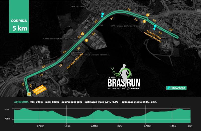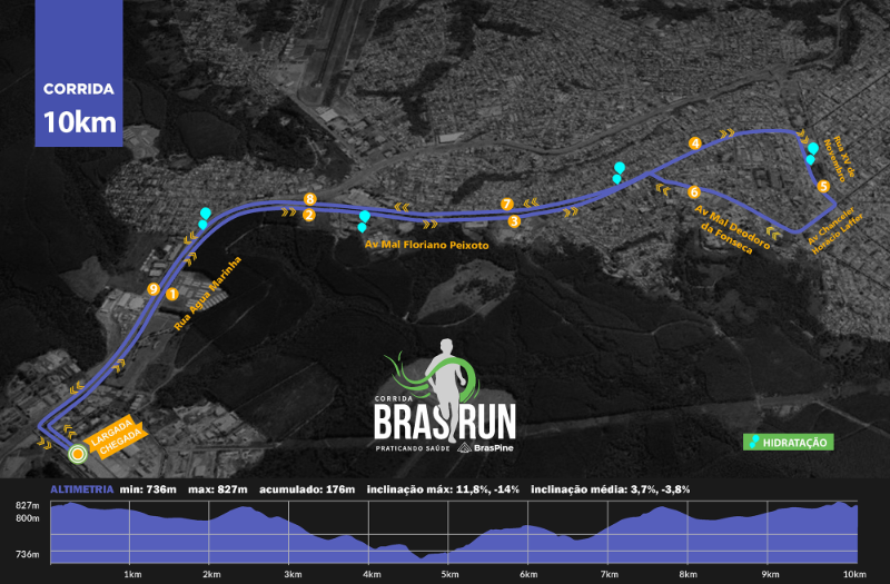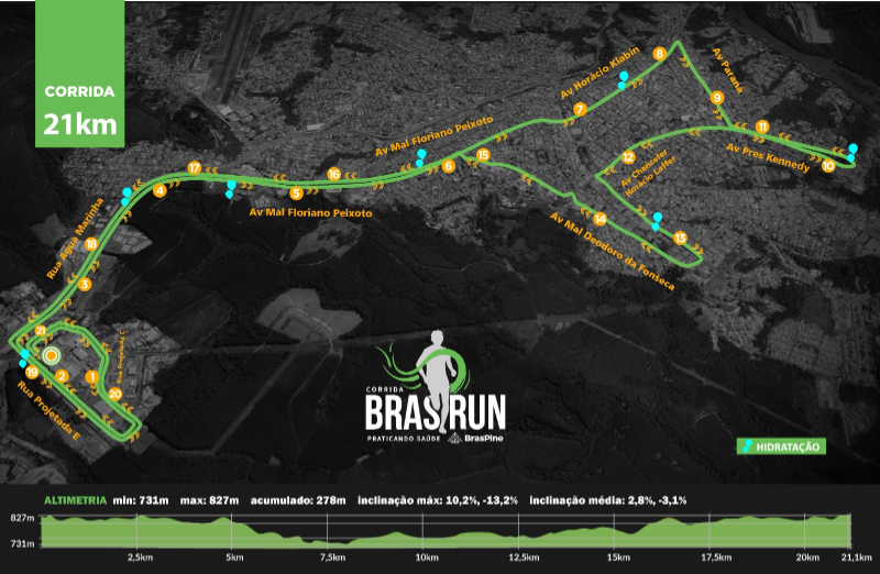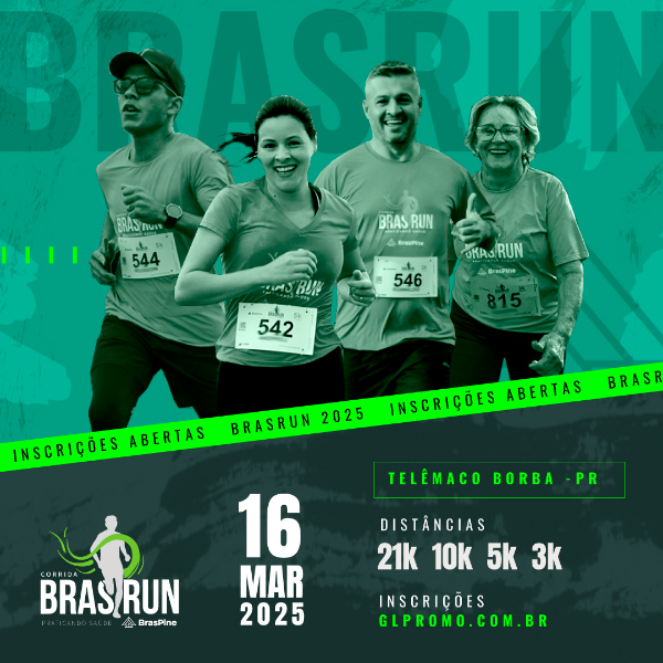 "A Corrida BrasRun - Etapa BrasPine Telêmaco Borba", será realizado em etapa única nas distâncias de 5km, 10km e 21km (meia maratona), caminhada 3km.