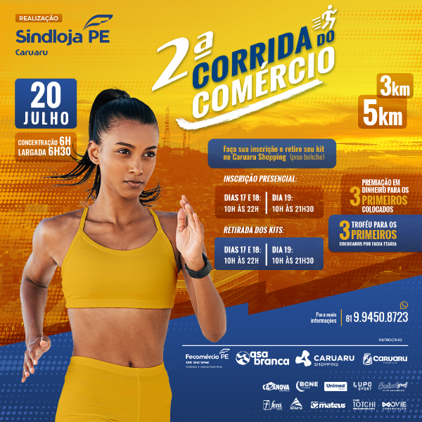 A 2ª Corrida do Comércio é um evento realizado pelo Sindicato dos Lojistas do Comércio de Caruaru - Sindloja, a qual, irá acontecer no dia 20 de julho de 2025, com largada às 06h30 no Bairro São Francisco, em frente ao Sindloja Caruaru. O evento é um encontro de esporte, solidariedade e inclusão, promovendo saúde e sustentabilidade para a comunidade.