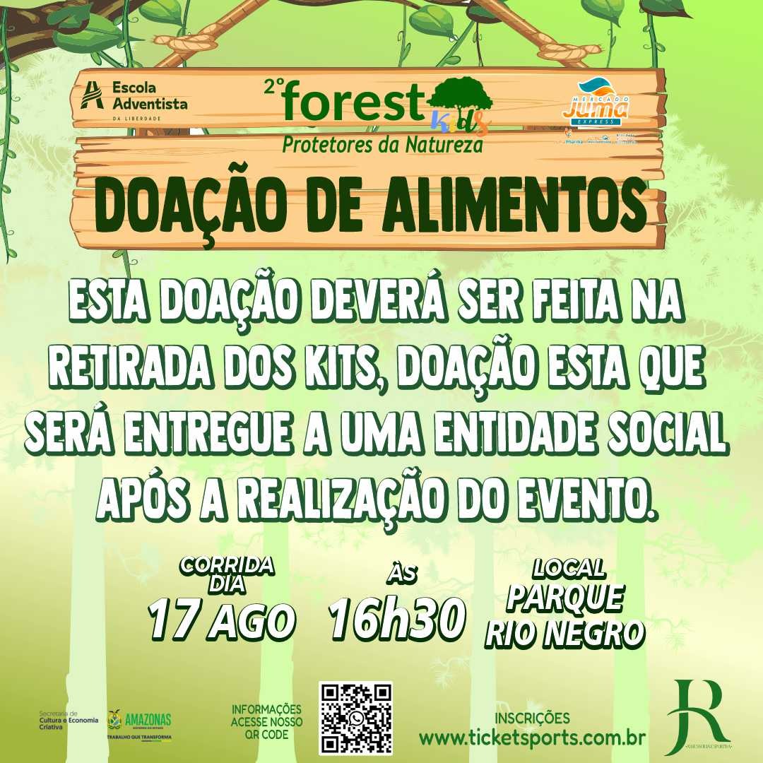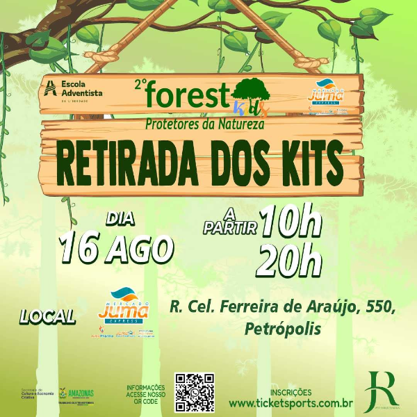 A 2° edição da Forest Kids será realizada no dia 17 de agosto de 2025, respectivamente domingo com a participação das crianças, devidamente inscritas, o evento ocorrerá com qualquer condição climática, podendo ser cancelado caso condições de catástrofe ou questões sanitárias coloquem em risco a integridade física dos participantes e/ou espectadores.