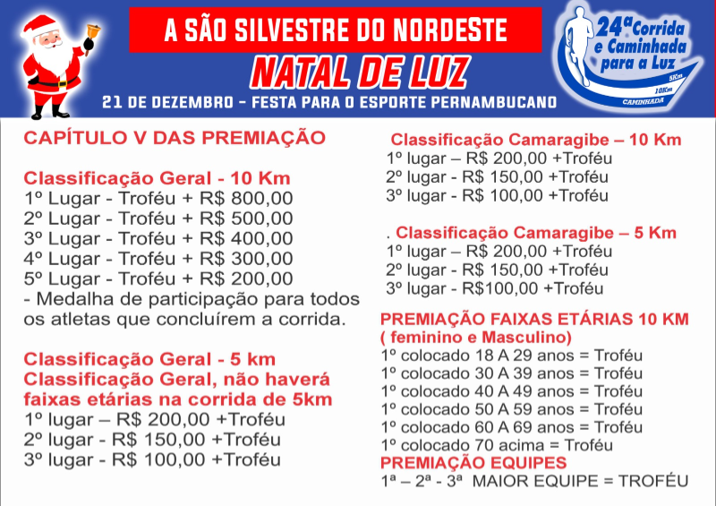 🏃♀️ Corrida e Caminhada 5Km: percurso urbano pela Av. Pe. Ozéas Cavalcante🏃♂️ Corrida 10Km: percurso completo pelas vias de Camaragibe👧 Corrida Kids:- 4 a 6 anos: até 60 metros- 7 a 9 anos: até 200 metros- 10 a 12 anos: até 500 metros📍 Largada: Corredor do Esporte, próximo ao Camará Shopping