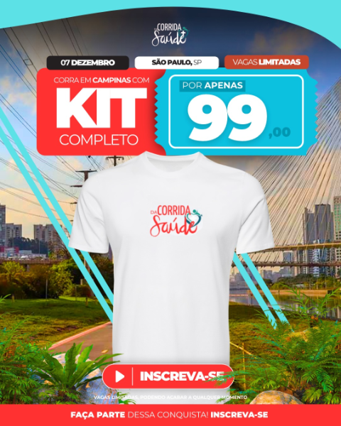 3.1A escolha do tamanho da camiseta do kit estará disponível no site de inscrição.
