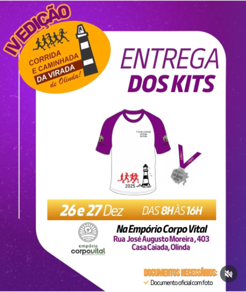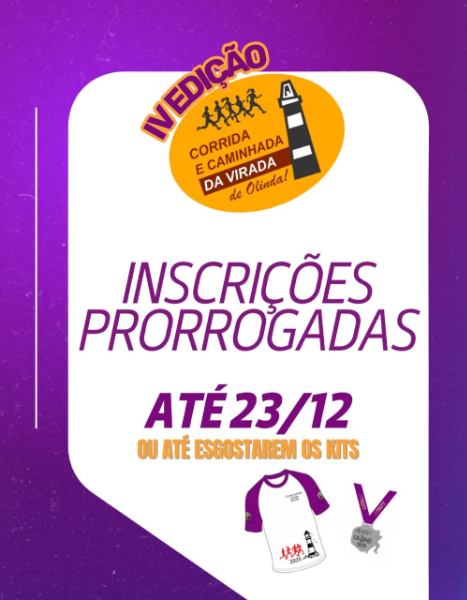 Diante do sucesso que foi a 3ª edição da Corrida e Caminhada da Virada de Olinda em 2024 a Lauryston Produtora e Organizadora de Eventos Esportivos convida todos os atletas e o público em geral para participarem da 4ª edição do nosso evento.