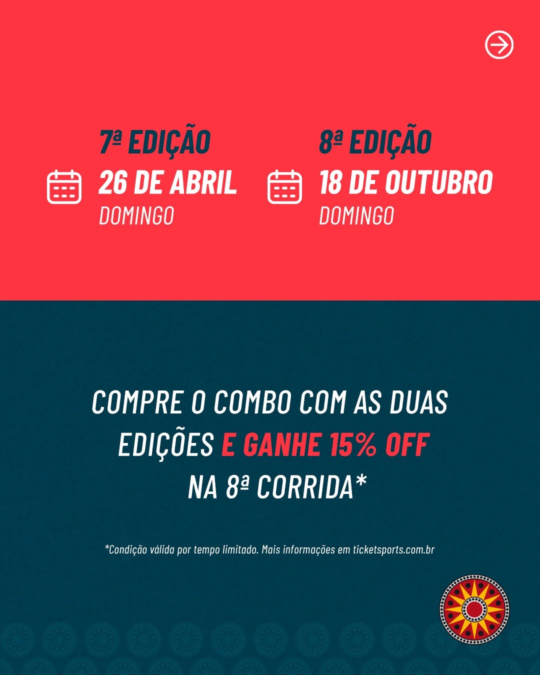 Valor da inscrição para equipes: R$110,00 cada inscrição, sem taxa de serviço do site
