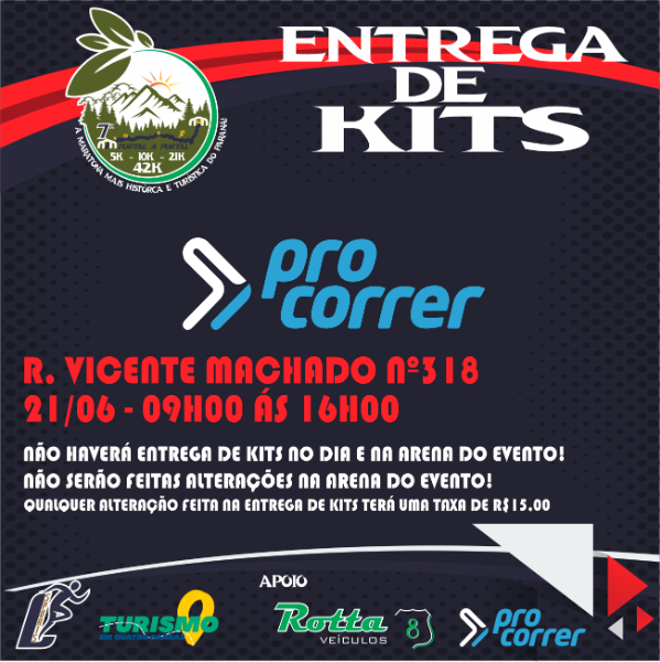 Não serão entregues troféus, medalhas, kits ou camisetas após a cerimônia de premiação, ou término do evento, perdendo seu direito ao mesmo.