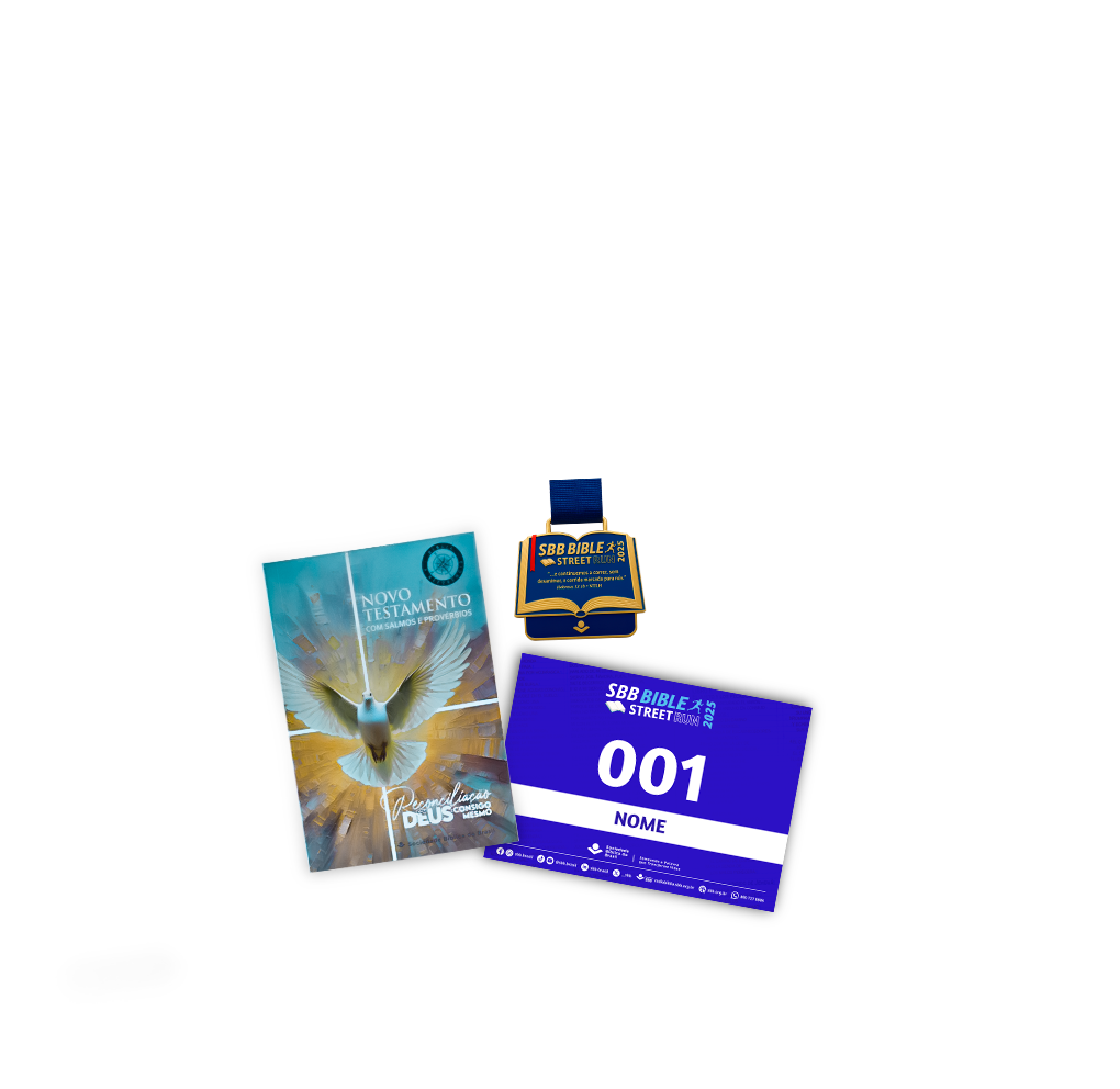 Todos os kits incluem Novo Testamento + medalha + número de peito, e cada um traz um jeito único de participar dessa corrida de fé. 🏃‍♂️📖