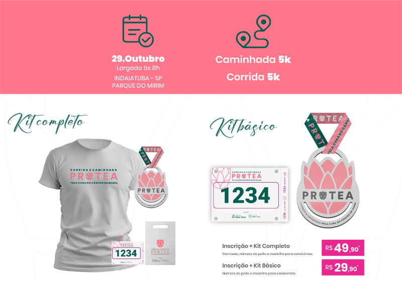 As inscrições para a “CORRIDA E CAMINHADA PROTEA” poderão ser realizadas nos valores abaixo informado de acordo com a data de cada lotes: