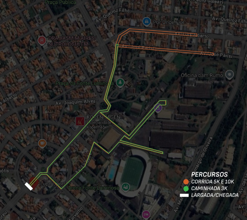 3 km (caminhada) 5 km (corrida) 10 km (corrida)
