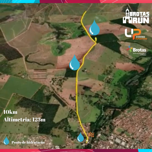Venha comemorar os 184 anos de Brotas com a BROTAS RUN, promovida pela UP Eventos Esportivos, será realizada em Brotas - SP, no domingo 30 de abril de 2023, largada as 7:30 (os atletas devem chegar as 7:00 para o aquecimento). Na Rua Francisco Costa, 47. Bairro: Santa Cruz, Cidade: Brotas-SP.
