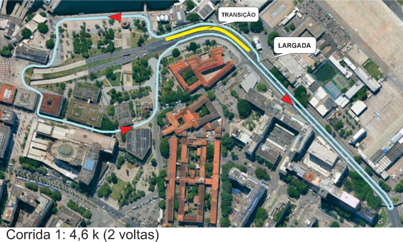 Adulto : 4,6 km de corrida x 19,2 km de ciclismo x 2,3 k de corrida