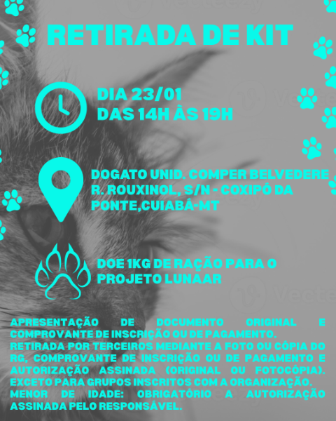 Atletas que se inscreveram na Modalidade Presencial e não comparecerem no Evento será cobrado o valor de R$30,00 para o envio do Kit. As alterações de Modalidade Presencial para a Virtual serão aceitas até 2 semanas antes do evento.