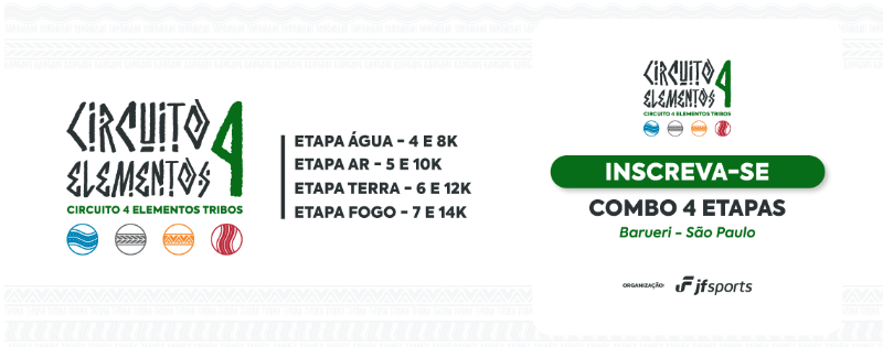 A “CIRCUITO 4 ELEMENTOS TRIBOS ETAPA ÁGUA” é a primeira etapa do Circuito. O foco dessa prova, que tem percursos de 4K e 8K, é desafiar você a ir mais longe.