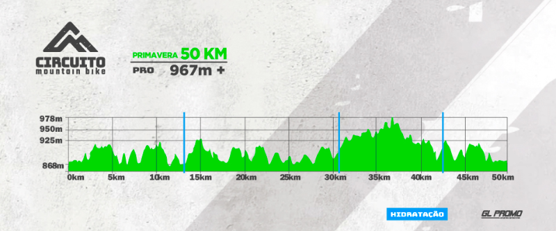 Ao longo do percurso da PROVA haverá posto de hidratação com água para abastecimento próprio qual o atleta deverá parar. É recomendado o uso de sistema de hidratação própria (squeeze ou mochila de hidratação) caso queira otimizar seu pedal. Não haverá copinhos de água durante o percurso: