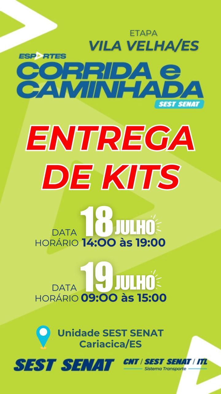 Os kits não retirados nos dias e horários determinados não serão entregues posteriormente.