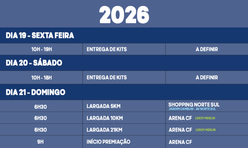 CRONOGRAMA E RETIRADA DE KIT