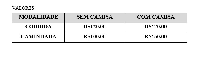 Todos os participantes receberão no ato de chegada, porções de Frutas para reposição imediata de glicose!