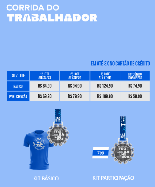 Kit Participação: Número de peito + Chip + Medalha (entregue na dispersão)