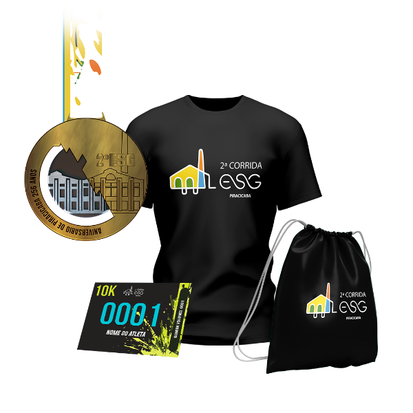 KIT COMPOSTO POR MEDALHA FINISHER; CAMISETA MANGA CURTA; SACOCHILA, NUMERAL + CHIP