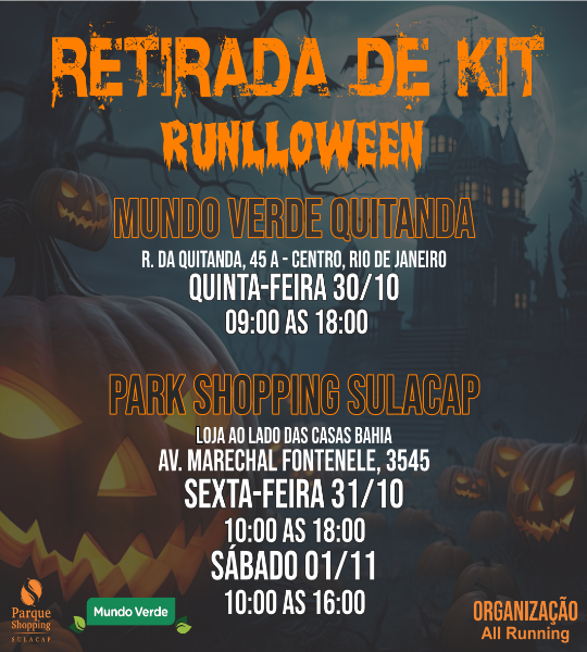 Venha com seu melhor traje de Halloween, com muita criatividade e espírito de aventura! Uma experiência única que vai te fazer correr (ou caminhar) em meio ao clima assustador e encantador dessa data tão especial.