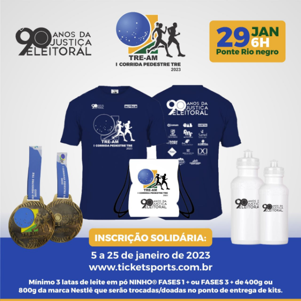 A I CORRIDA PEDESTRE do T.R.E acontecerá em alusão aos 90 anos do Tribunal Regional eleitoral e tem como objetivo, além de ajudar instituições carentes, visa difundir na comunidade a prática esportiva e conscientização por uma vida mais ativa e saudável!