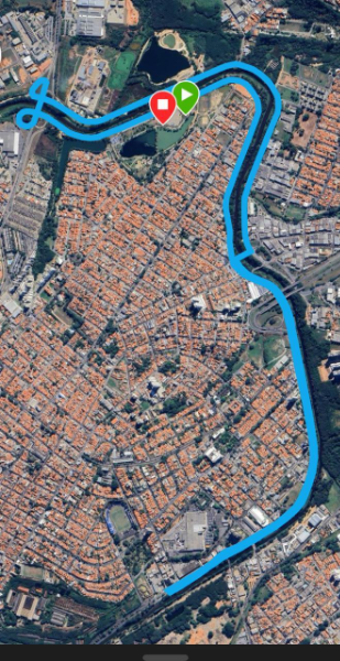 Largada na Av. Dom Aguirre, do chamado “redondão” no Parque das Águas, seguindo na Av. Dom Aguirre sentido centro até a rotatória da Praça Lyons, retornando pela Av. Dom Aguirre sentido bairro, retornando de frente ao bolsão de estacionamento do Parque das Águas, retornando pela mesma via até a chegada, que se dá no mesmo local da largada, no Parque das Águas, no chamado “redondão”, totalizando 10,05 Km de percurso.