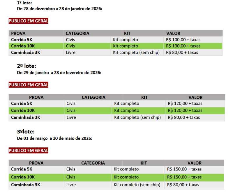 • Corrida 5K / 10k