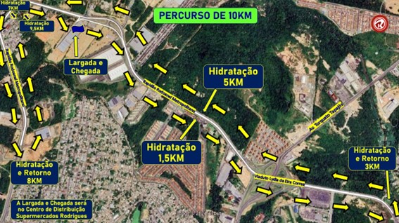A largada e a chegada da prova serão na Av. do Turismo, 11514 - Galpão B - Tarumã Açu, Manaus - AM, 69041-010, (Centro de Distribuição Supermercado Rodrigues) sob quaisquer condições climáticas, nos seguintes horários: