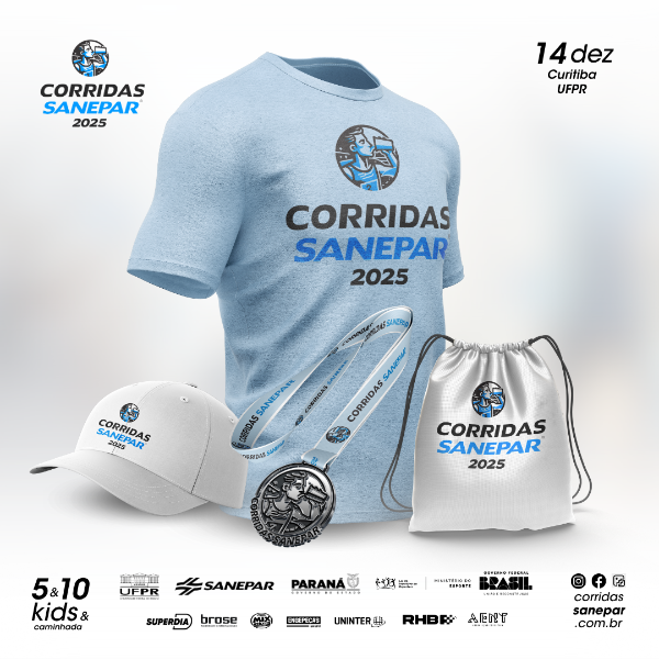 O Projeto Corridas Sanepar 2025 é uma parceria entre a Sanepar e o Governo do Estado do Paraná com apoio da Lei de Incentivo ao Esporte e Ministério dos Esportes, com a realização da AENT - Associação Esportiva. Através dessa iniciativa, buscamos promover a prática esportiva e a saúde, além de sensibilizar a população sobre a importância da preservação dos recursos hídricos e do saneamento básico.