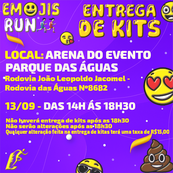 NÃO HAVERÁ ENTREGA DE KITS NA ARENA DO EVENTO.