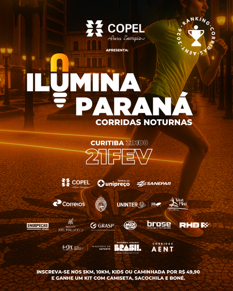 O Paraná será palco de um dos mais inovadores circuitos de corridas de rua do país: o Ilumina Paraná, apresentado pela Copel. Um evento noturno que levará energia e movimento para as ruas iluminadas das cidades do Paraná, transformando cada etapa em uma experiência inesquecível.