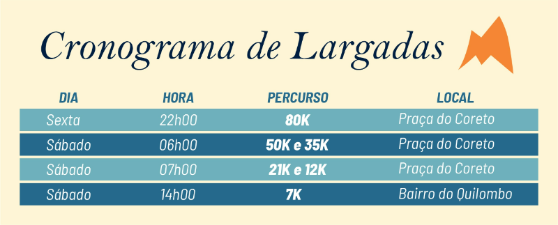 Percursos: 80k / 50k / 35k / 21k / 12k / 7k