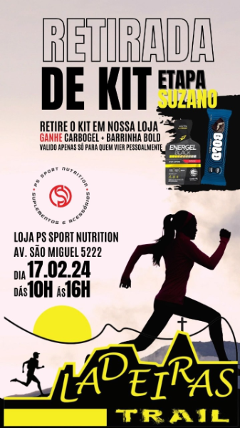 *Haverá entrega de um kit cortesia com CARBOGEL + BARRA DE CEREAIS pela loja PS SPORT NUTRITION aos titulares do kit que forem nesses dia.