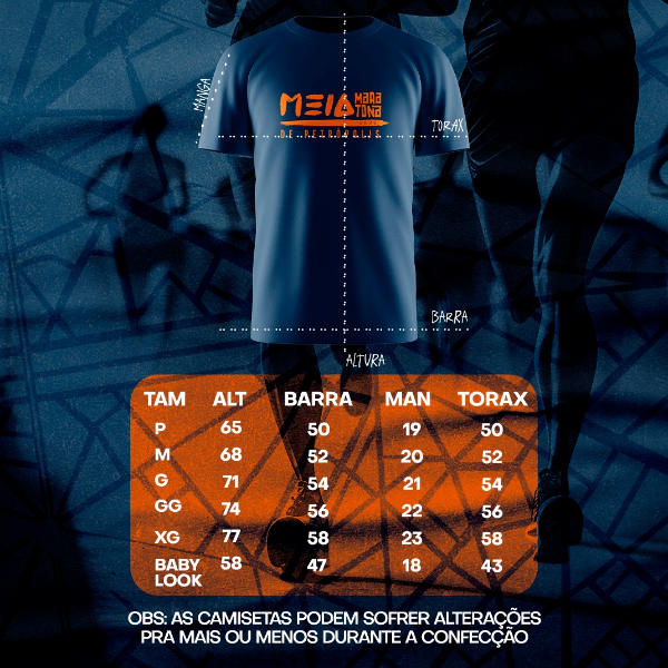 Tamanho das Camisetas: