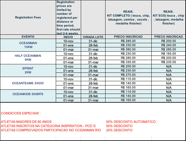 - 🏅 OCEANMAN (10 km): Individual, a partir de 15 anos,prova classificatória para o Mundial