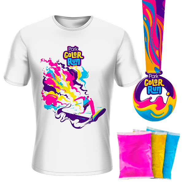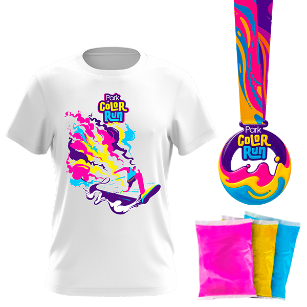 Composto por: Camiseta + Medalha + Sacos de pó colorido + Chip e número de peito