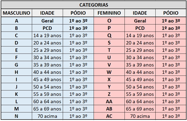 - Os TRÊS primeiros colocados das categorias por FAIXA ETÁRIA na prova de 5Km receberão troféus.