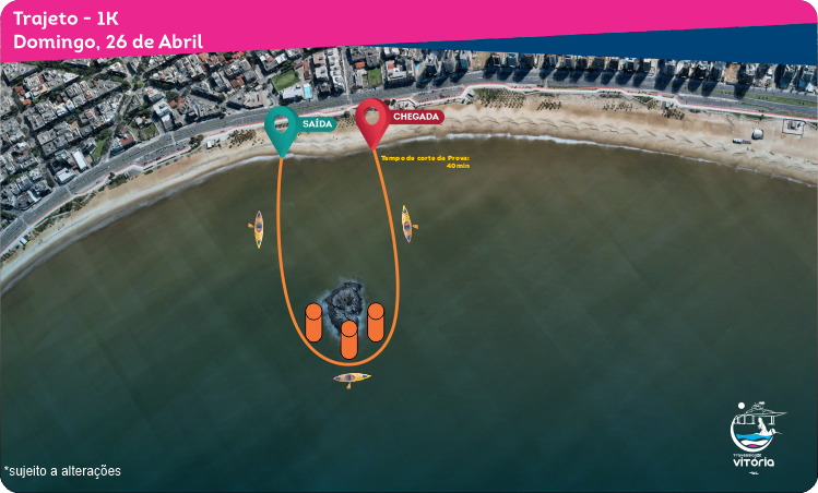 A largada da prova de 1km acontecerá no dia 26 de Abril (Domingo) às 9:45h na Praia de Camburi. O tempo de corte será de 40min.
