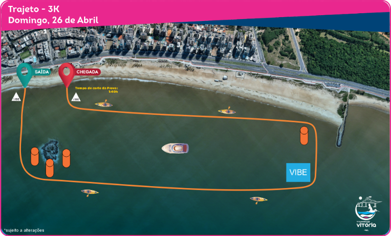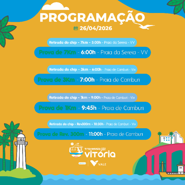 A largada da prova de 3km acontecerá no dia 26 de Abril (Domingo) às 7:00h na Praia de Camburi. O tempo de corte será 1,40h
