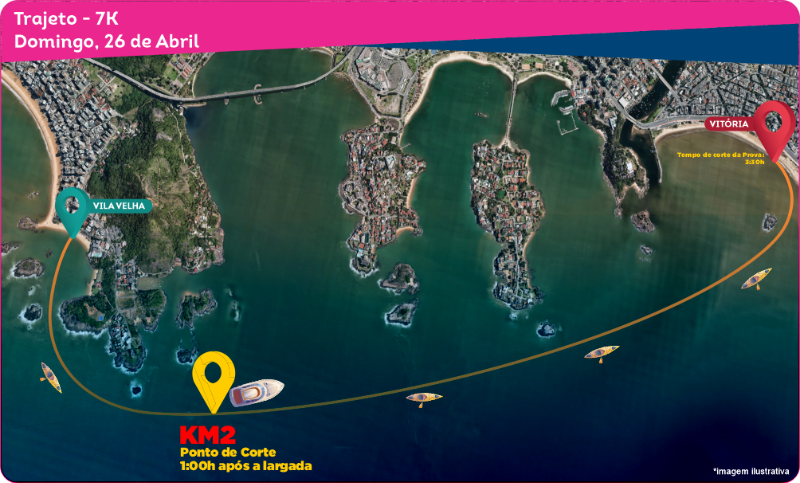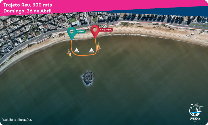 – Percurso: Saída da Praia da Sereia em Vila Velha, atravessando e passando por fora de todas as ilhas próximas conforme ilustrado na figura, e chegando com ombro esquerdo na Ilha do Socó. (A confirmar);