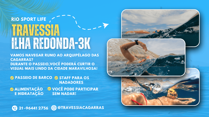 travessia ilha redonda 3k RIO SPORT LIFE 25/01/2026 URCA RIO DE JANEIRO: RUA URANDI, 25, Rio de Janeiro, RJ, Brasil TRAVESSIA ILHA REDONDA - 3k PASSEIO E NATACAO LIVRE VENHA NADAR E CURTIR ESSE PARAÍSO DE NATAÇÃO EM ÁGUAS ABERTAS !PARA NADADORES E QUEM AMA A NATUREZA! . Trajeto e Programação Sobre o nosso evento https://share.google/cUvHzBIj8ZkKr2EWU COMPARTILHE ESTE EVENTO Organizador RIO SPORT LIFE
