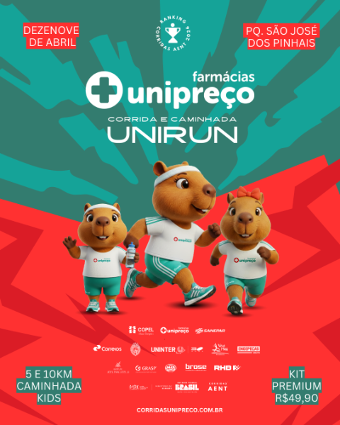 A UniRun faz parte desse movimento que reúne empresas patrocinadoras, parceiros e organizações que acreditam no esporte como ferramenta de saúde, integração e desempenho. Mais do que uma corrida isolada, o evento compõe um circuito sólido, estruturado e reconhecido pelos atletas. A etapa de São José dos Pinhais reforça o compromisso das Farmácias Unipreço com a promoção da saúde por meio do movimento.