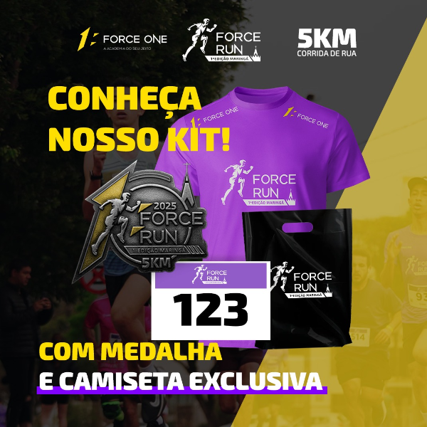 A 1ª edição da CORRIDA FORCE RUN será realizada no dia 06 de dezembro de 2025 (sábado), com largada às 19h00, na ATI do Parque do Ingá – Av. São Paulo, nº 2517, Zona 7, Maringá/PR. Um evento esportivo vibrante, que promove saúde, superação e adrenalina, com premiação em dinheiro e troféus para os melhores colocados!