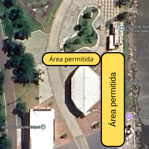 Haverá um espaço exclusivo para a montagem de tendas de assessorias/equipes, localizado ao lado da Escola de Surf Picuruta Salazar e do Museu do Surf, conforme indicado na imagem abaixo.